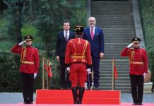 Kryeministri i Shqipërisë Edi Rama ka prit sot me ceremoni shtetërore të parin e Qeverisë së Kosovës, Albin Kurti.