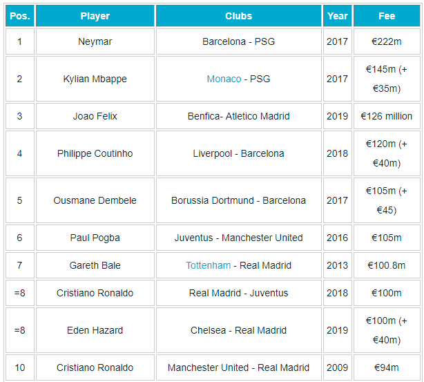 Në po atë vit, Parisi e bleu shumë shtrenjtë edhe Kylian Mbappen, duke e shëndërruar në futbollistin e dytë më të shtrenjtë në histori.