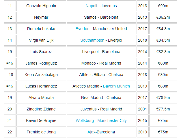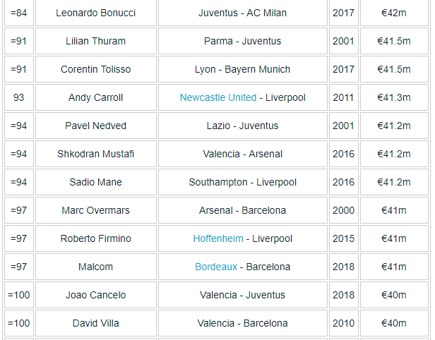 Që nga ajo kohë, çmimet e futbollistëve kanë fluturuar dhe Barcelona është ajo që vazhdoi rrugën e PSG-së, duke blerë Ousmane Dembelen për 105 milionë euro plus 40 bonuse si dhe Philippe Coutinhon nga Liverpooli për 120 milionë euro plus 40 bonuse, në total 160 milionë.
