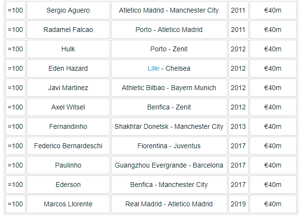 Këtë afat kalimtar, Joao Felix është transferuar te Atletico Madridi për 126 milionë euro, derisa Eden Hazard te Real Madridi për 100 milionë plus 40 të tjera varësisht prej paraqitjeve dhe arritjeve me klubin e ri.