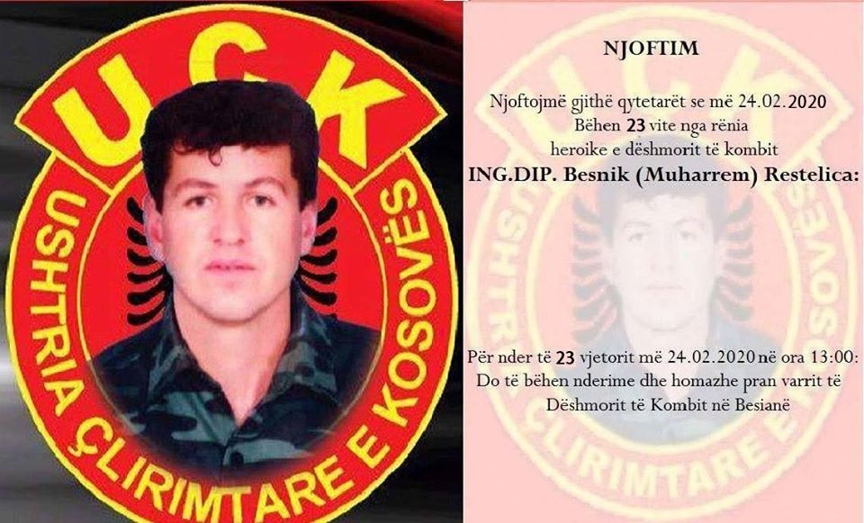 Sot bëhen 23 vjet nga rënia heroike e dëshmorit të kombit, Besnik Restelica, njofton Llapi.info.