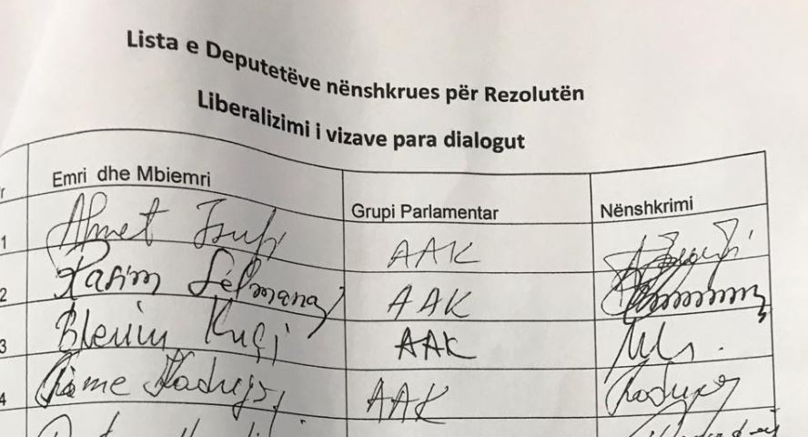Deputetët e AAK-së kanë inicuar një rezolutë për ndërprerjen e dialogut me Serbinë deri në liberalizimin e viazve për Kosovën.