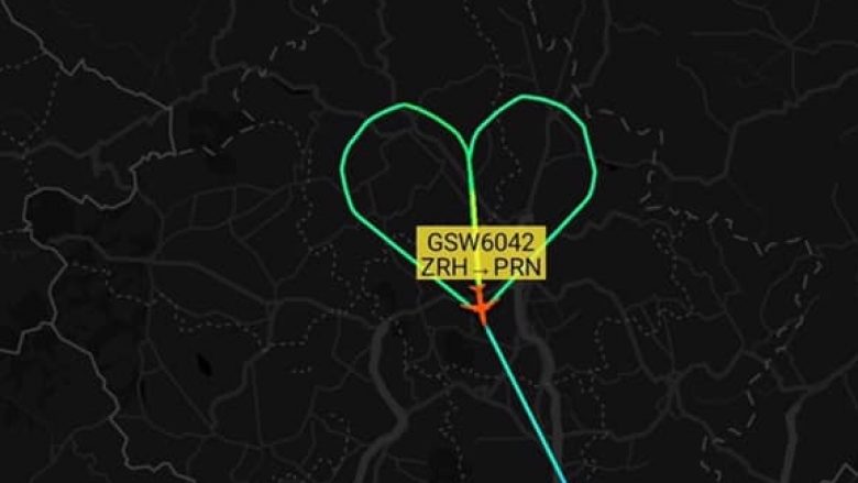 “Sot më kërkesë të pilotit dhe me miratim të kontrollorit të trafikut ajror, aeroplani i kompanisë Chair në linjën Cyrih – Prishtinë bëri simbolin e zemrës në qiellin e Kosovës si shenjë përkrahjeje për vendin tonë në këto momente të vështira për gjithë në, si rrjedhojë e virusit COVID-19”, thuhet në njoftimin e ASHNA,