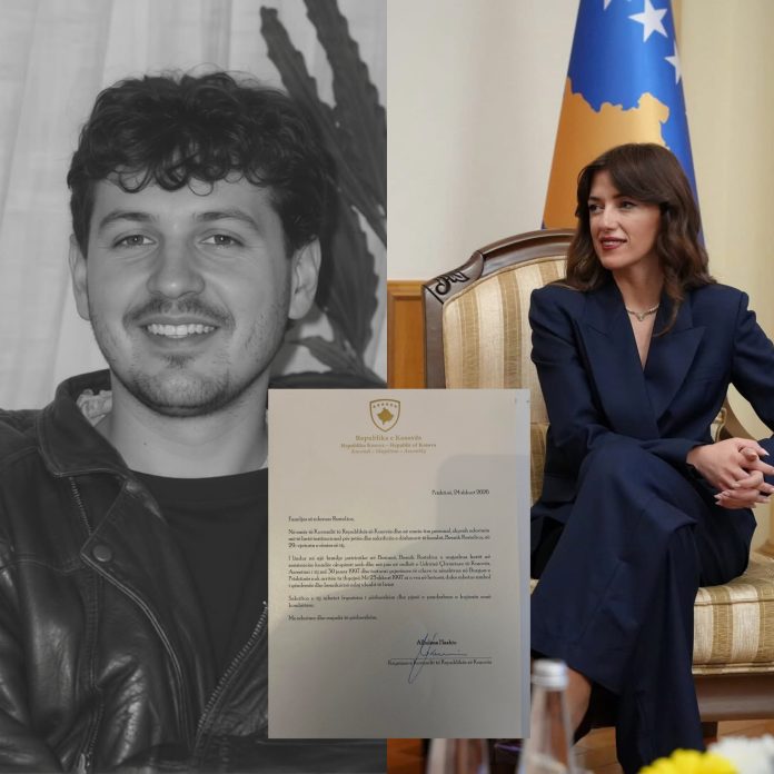 Kryetarja e Kuvendit të Republikës së Kosovës, Albulena Haxhiu, në emër të institucioneve u ka dërguar letër familjes Restelica, në 29 vjetorin e rënies së heroit Besnik Restelica.
