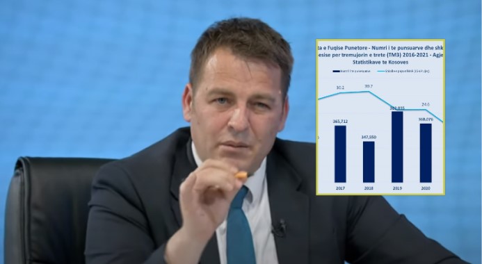 “Indikatoret kryesor te tregut te punes: numri i te punesuarve gjate tremujorit te trete 2021 ka arritur ne 414,705, ndersa shkalla e papunesise eshte ulur ne 17.7% (ASK, 2022). Gjate vitit 2021 jane raportuar rreth 32,000 vende pune me shume krahasuar me periudhen e njëjtë te vitit 2019. Shkalla e papunesise eshte ulur nga 24.6 ne 17.7%”, shkruan Muja.