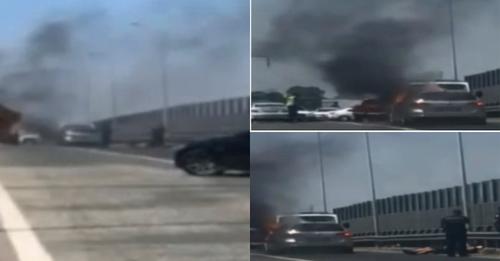 Ndërkohë dy persona të tjerë ndodhen ende brenda makinës që është përfshirë nga flakët.