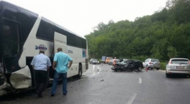 Dhjetë persona ka pësuar lëndime trupore, pas përfshirjes në një aksident të një autobusi.