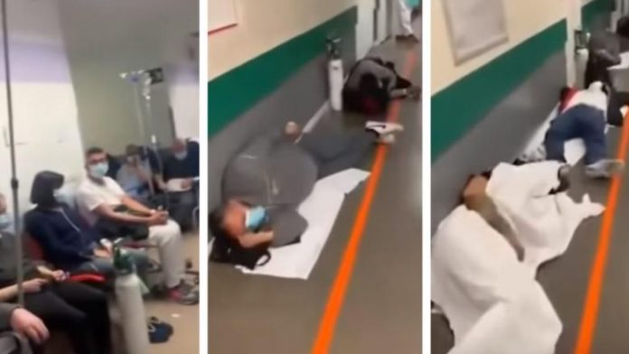 Skena rrëqethëse janë filmuar brenda një spitali në Spanjë, ku shihen të prekurit me coronavirus duke qëndruar të shtrirë nëpër dyshemenë e korridoreve, duke u kollitur dhe luftuar për pak ajër.