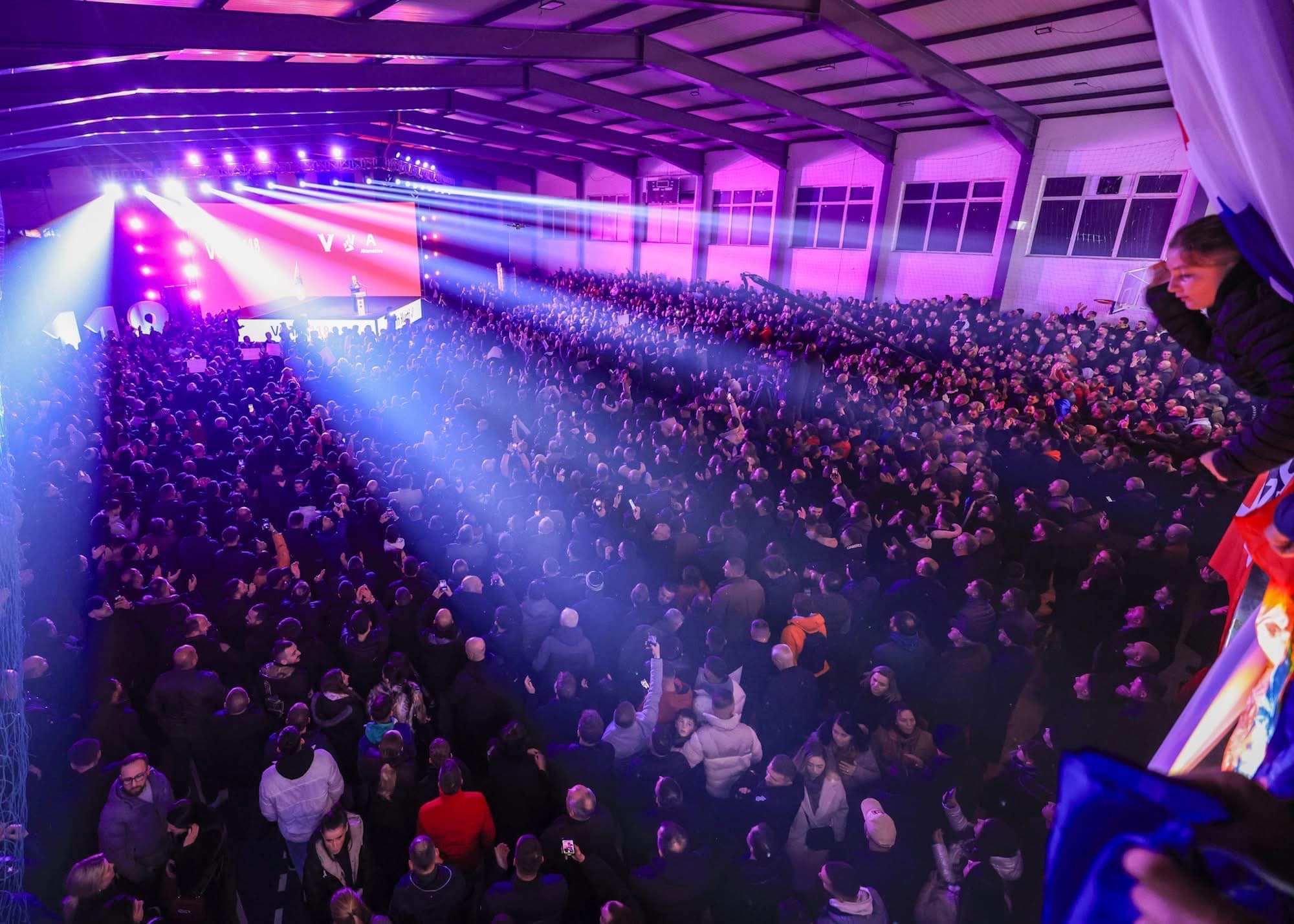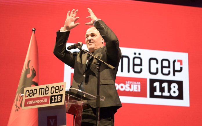 Kryetari i Podujevës, Shpejtim Bulliqi, në fjalimin e mbrëmshëm në tubimin e mbajtur në Podujevë.