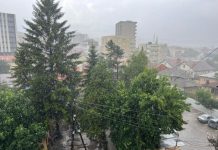 Para pak minutave ka filluar një stuhi e fuqishme në Prishtinë e përcjellë me shi e breshër të rrëmbyeshëm dhe erë të fortë.