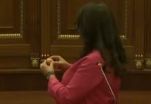 Deputetja e LDK-së, Vlora Dumoshi, pas përfundimit të fjalimit në foltoren e Kuvendit, ku Kurtin dhe Qeverinë e tij i quajti gënjeshtarë dhe mashtrues,...