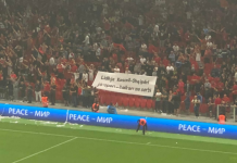 Një grup i tifozëve shqiptarë këtë mesazh e kanë shfaqur sonte, në ndeshjen...