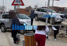 Vetura e Policisë e bllokon trotuarin në qendër të Podujevës (Foto)
