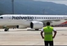 Aeroporti i Kukësit këtë të premte ka pritur zyrtarisht dhe ndalesën e avionit të parë me pasagjerë nga Zyrihu.