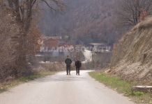 Milot Krasniqi bashkë me familjarë, del të ecë në një pjesë të fshatit Makovc.