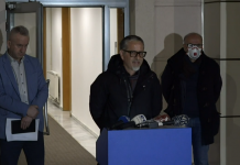 Ministri në detyrë i Shëndetësisë Arben Vitia, në një konferencë të përbashkët me drejtorin e Policisë Rashit Qalajn dhe drejtorin e IKSHPK-së, Naser Ramadanin...