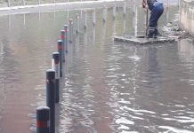 Shiu që po bije ditëve të fundit në Prishtinë, ndonëse jo shumë i rrëmbushëm, po e përmbytë hyrjen tek Stacioni i Autobusëve në Prishtinë.