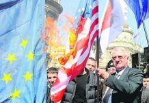 Në 20-vjetorin e bombardimeve, Sheshel djeg flamurin e BE-së dhe NATO-s