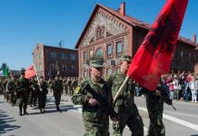 Flamuri shqiptar valëvitet në paradën e NATO-s në Letoni
