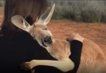 Kanguri nuk ndalon së përqafuari vullnetaren që i shpëtoj jetën nga zjarret në Australi