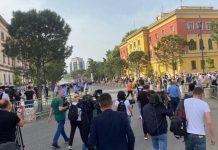 Forcat policore shqiptare janë përplasur me protestuesit në Tiranë në orët e para të së dieles, gjatë shembjes së objektit të Teatrit Kombëtar.