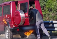 Digjet një veturë Mercedes G-Class në Rrugën e Kombit (VIDEO)