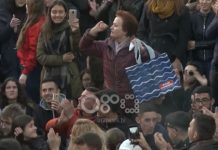 Shqipëri, ministrja e Arsimit kalon përballë studentëve, ata thërrasin: Turp, turp