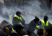 Policia në Paris ka gjuajtur gaz lotsjellës në drejtim të protestuesve në protestën e sotëm anti-qeveritare.