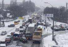 Borë e madhe në Ukrainë, kaos në trafik (Video)