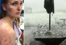 Është kapur në befasi në rrugë nga një tornado i rrezikshëm, ndërsa mbante në duar edhe foshnjës e saj të vogël.