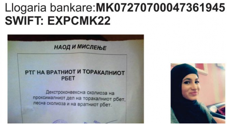 Ajshe Aliu nga fshati Llopat i Kumanovës vuan nga një sëmundje në boshtin kurrizor dhe ka nevojë për mjete financiare që urgjentisht të operohet...
