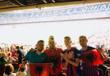 Llapjanët “pushtojnë” Camp Nou-n, shpalosin flamujt shqiptar