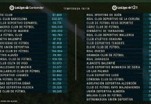 La Liga ka publikuar kufizimet e pagave për 20 klubet e La Ligas për sezonin, 2018/19.