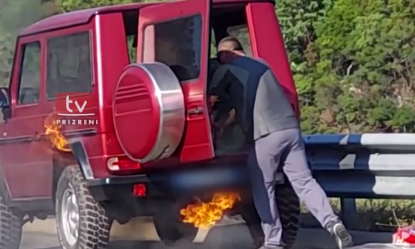 Një veturë e tipit Mercedes G-Class është përfshirë komplet nga flakët, në Rrugën e Kombit.