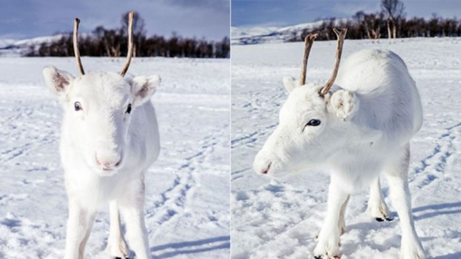 Imazhet, ku dreri i vogël pothuajse është i padukshëm nga peizazhi, tani është pëlqyer pothuajse 20,000 herë që kur u publikua të hënën. Renat e bardha konsiderohen shumë të rralla.