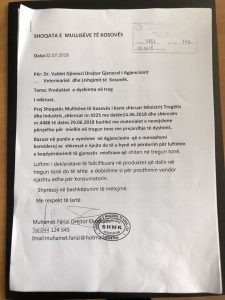 Prandaj, ata kanë kërkuar nga Ministria e Tregtisë dhe Industrisë që përmes Inspektoratit të ndaloj shitjen e këtij produkti, derisa të plotësohen kushtet ligjore që dëshmojnë kualitetin dhe të dhënat që janë në interes të konsumatorit.