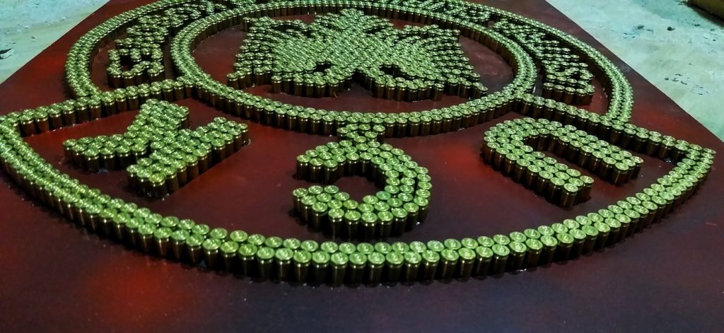 Kjo emblemë është punuar me gëzoja të fishekëve 99mm.