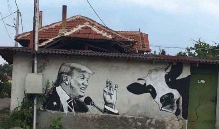 Lajmi thoshte se ai mural që në të shihej Presidenti Amerikan, Donald Trump pranë një lope, gjendej në fshatin Lupç i Poshtëm në Podujevë.