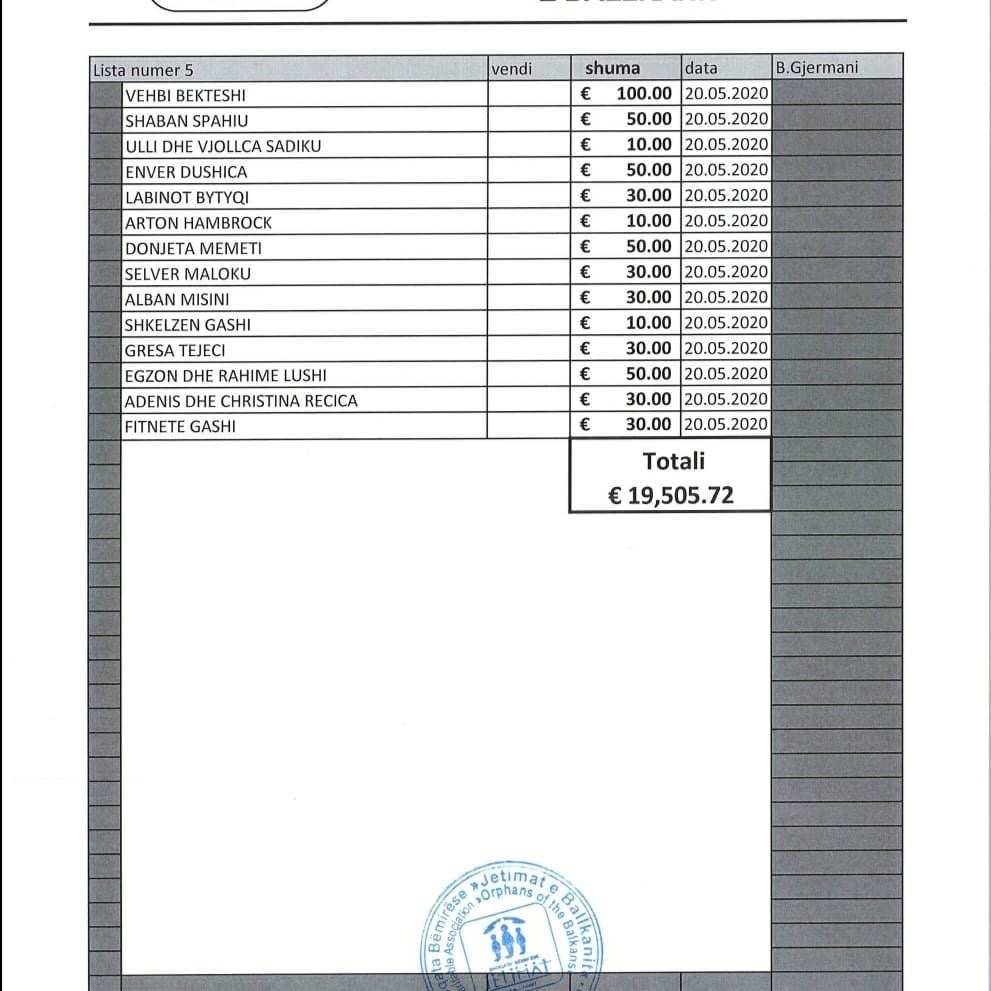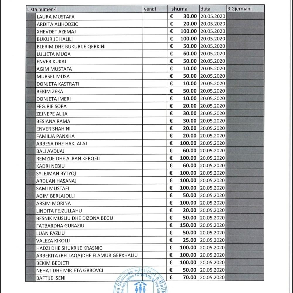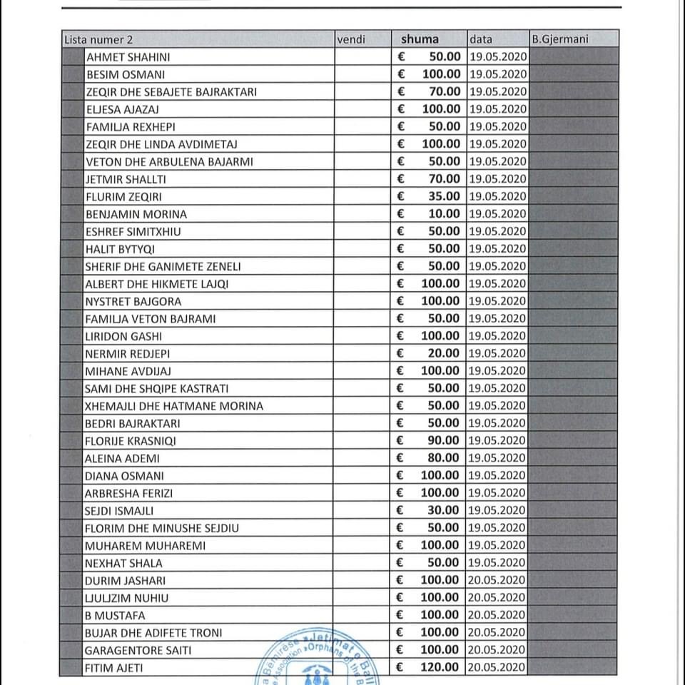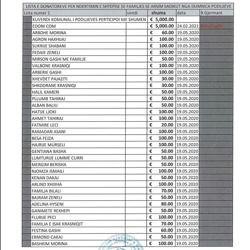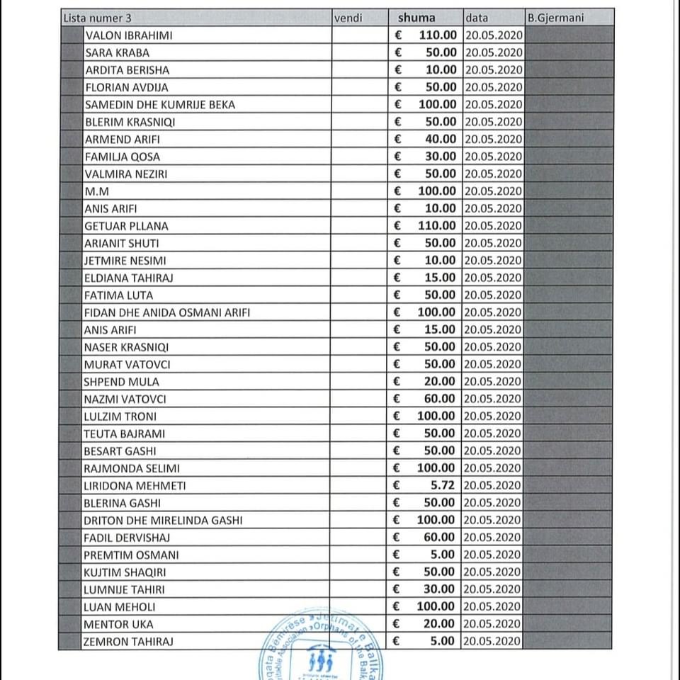 Listat e donatorëve i gjeni të bashkëngjitura në këtë postim.
