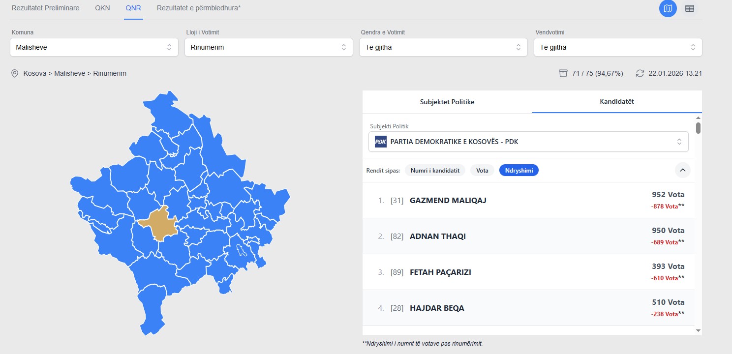 Tek Partia Demokratike e Kosovës, numër i madh i votave i janë hequr kandidatit për deputet nga ky subjekt politik, Gazmend Maliqaj. Pra, 878 sosh.