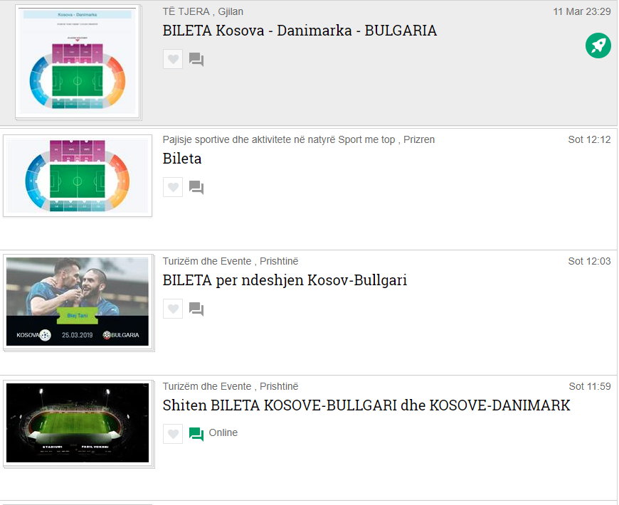 Në ueb-faqen “MerrJep.com”, disa qytetarë kanë filluar t’i keqpërdorin biletat që i kanë marrë nga sistemi i Federatës së Futbollit të Kosovës për ndeshjen ndaj Danimarkës dhe Bullgarisë.