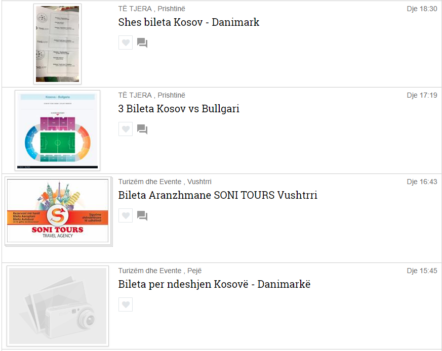 Po të hyni në këtë uebfaqe, mund të shikoni se ka disa shpallje për shitjen e biletave në mënyrë ilegale.