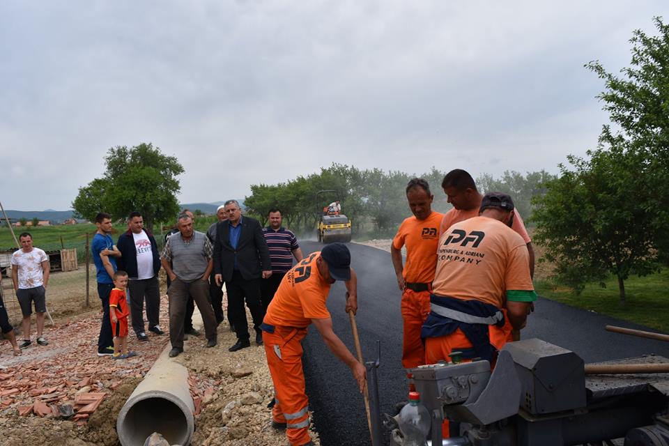 “Gjatë vizitës punimeve në asfaltimin e disa rrugëve në fshatrat Terrnavë dhe Halabak” ka shkruar Veliu sipër fotove./Llapi.info