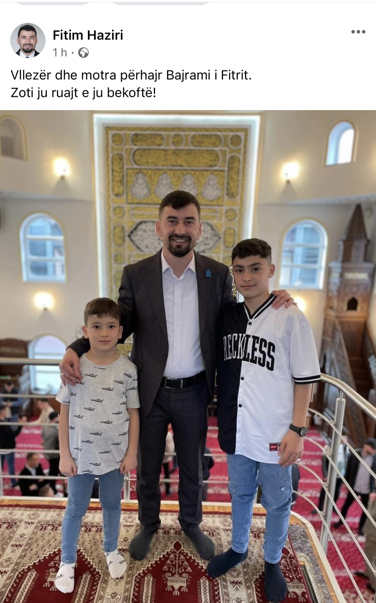 Në një fotografi të publikuar bashkë me djemtë e tij, Haziri ka shkruar; Vllezër dhe motra përhajr Bajrami i Fitrit.