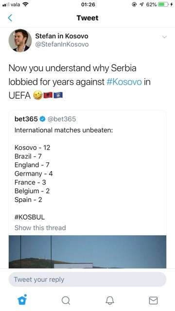 Ai përmes një postimi në rrjetin e tij social, Twitter, ka ironizuar me shtetin e Serbisë, duke shkruar se tani e ka kuptuar se pse kanë lobuar me vite kundër Kosovës në UEFA.