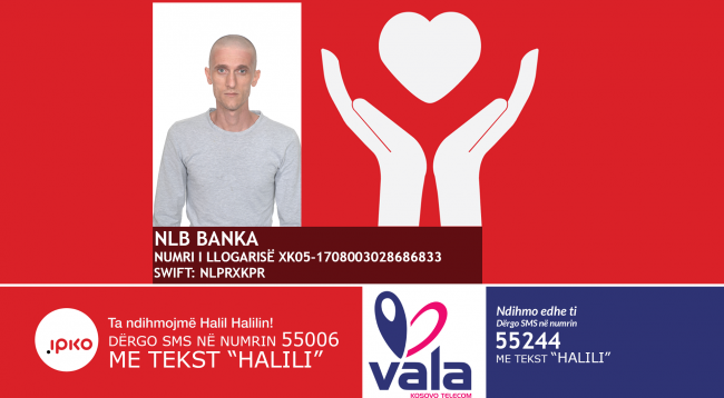 Ju, po ashtu, mund ta ndihmoni atë duke dërguar mesazh në numrin e telefonit në IPKO: 5506 me tekstin “Halili” e paashtu edhe në VALA me numër 55244 me tekstin “Halili”.