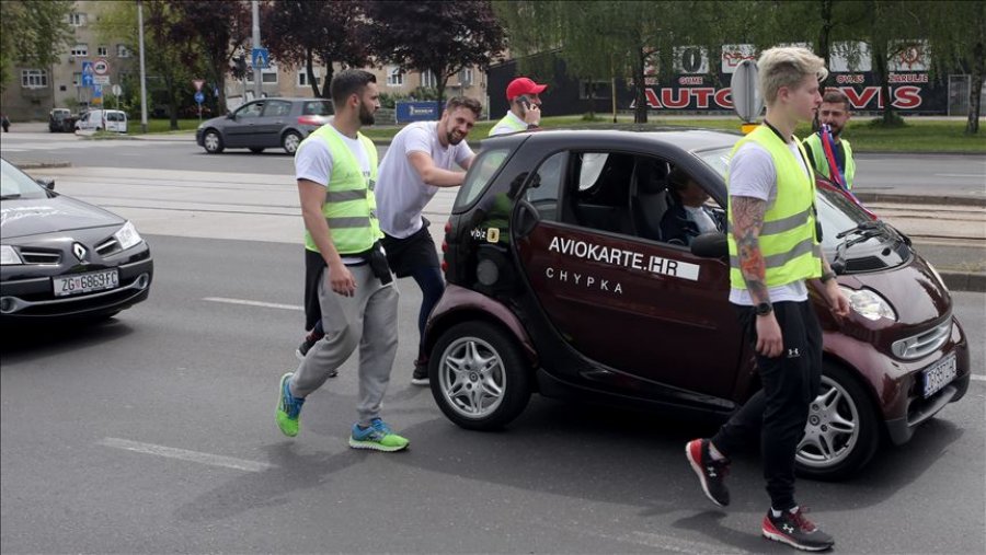 Lubenjak i cili gjatë 17 orëve me duar ka shtyrë automjetin nëpër rrugët e kryeqytetit të Kroacisë, Zagreb, ka thyer rekordin e mëparshëm prej 83 kilometrash.