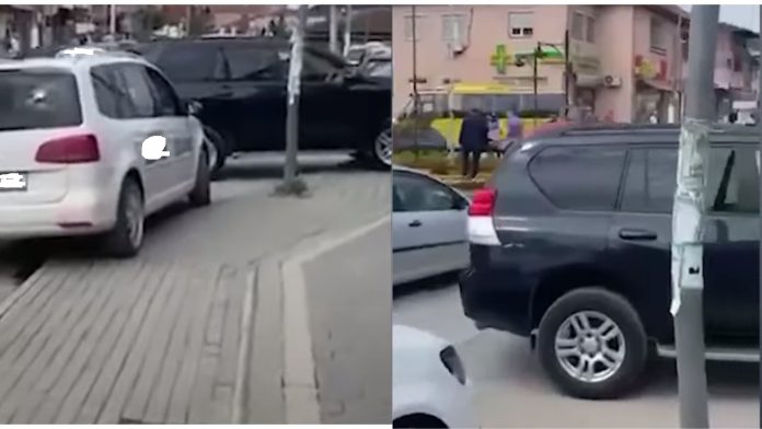 Në pamjet që ka siguruar “Insajderi”, shihet se kjo veturë ka bllokuar kalimin e lirë për këmbësorë – pasi e njëjta ishte në trotuar.