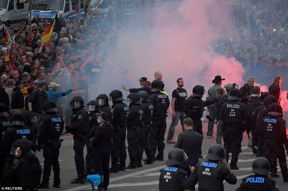 Protestuesit mbanin parulla të tilla si “Ne jemi populli”, “Ndaj përmbytjes nga refugjatët”, “Do shpëtojmë Europën” etj.