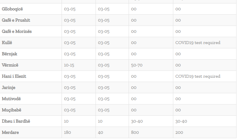Për dallim nga Merdarja, në pikët kalimet tjera kufitare kolonat dhe pritjet janë më të reduktuara./Llapi.info